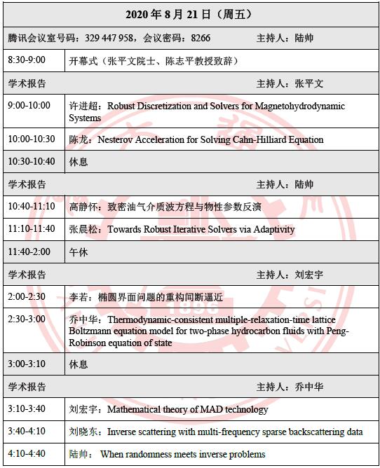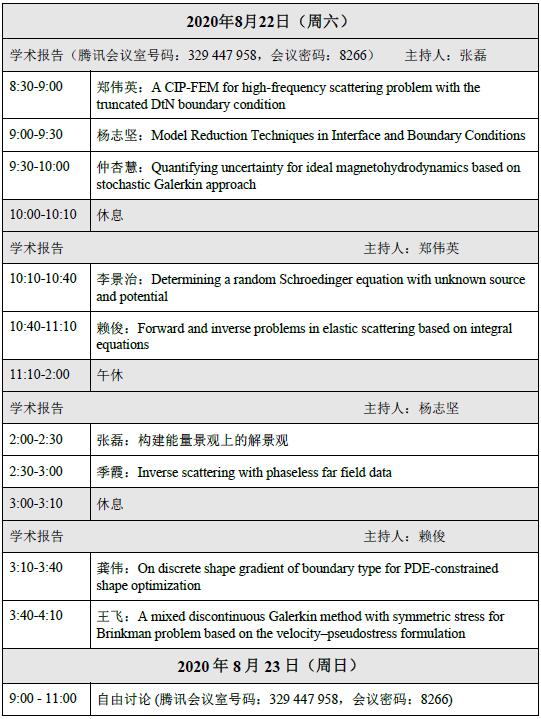 一、 会议时间:2020年8月21日-23日(21-22日学术报告,23日自由讨论)