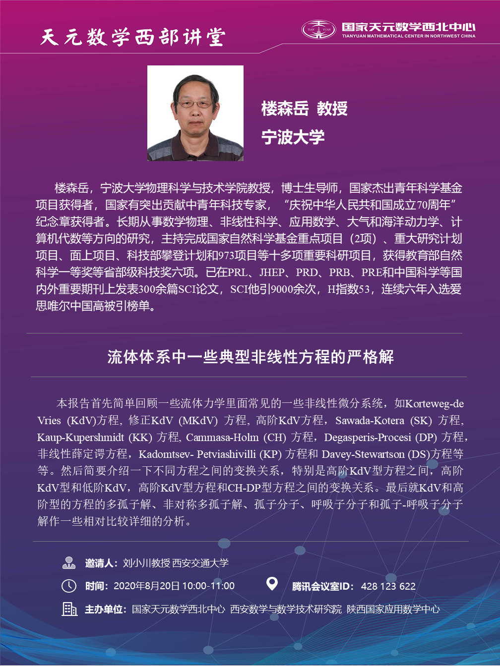 【天元数学西部讲堂】流体体系中一些典型非线性方程的严格解