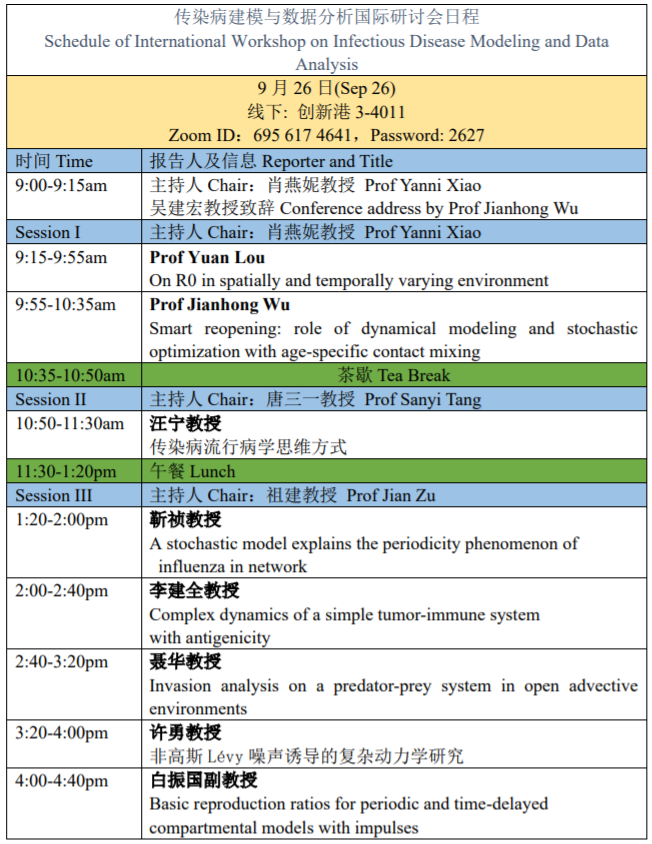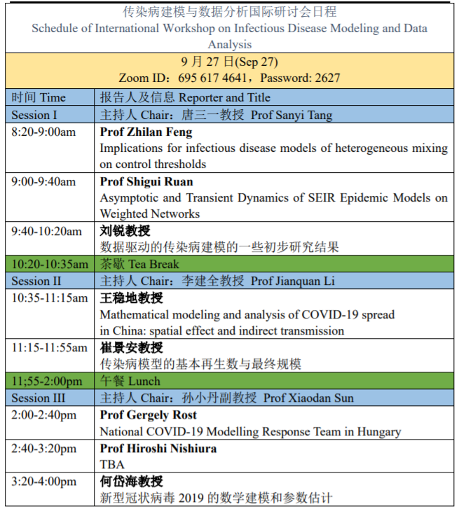 国家天元数学西北中心定于2020年9月26-27日在Beat365正版唯一官网必一举办中国西部创新港“科创月”系列活动之:“传染病建模与数据分析国际研讨会”。会议由Beat365正版唯一官网必一和西安数学与数学技术研究院联合承办,旨在加强数学、统计学,公共卫生以及医学等学科之间的合作,交流动力系统、生物数学、生物信息学和医学大数据分析领域的最新研究成果和发展动态,为青年学者、研究生搭建交流合作的平台。