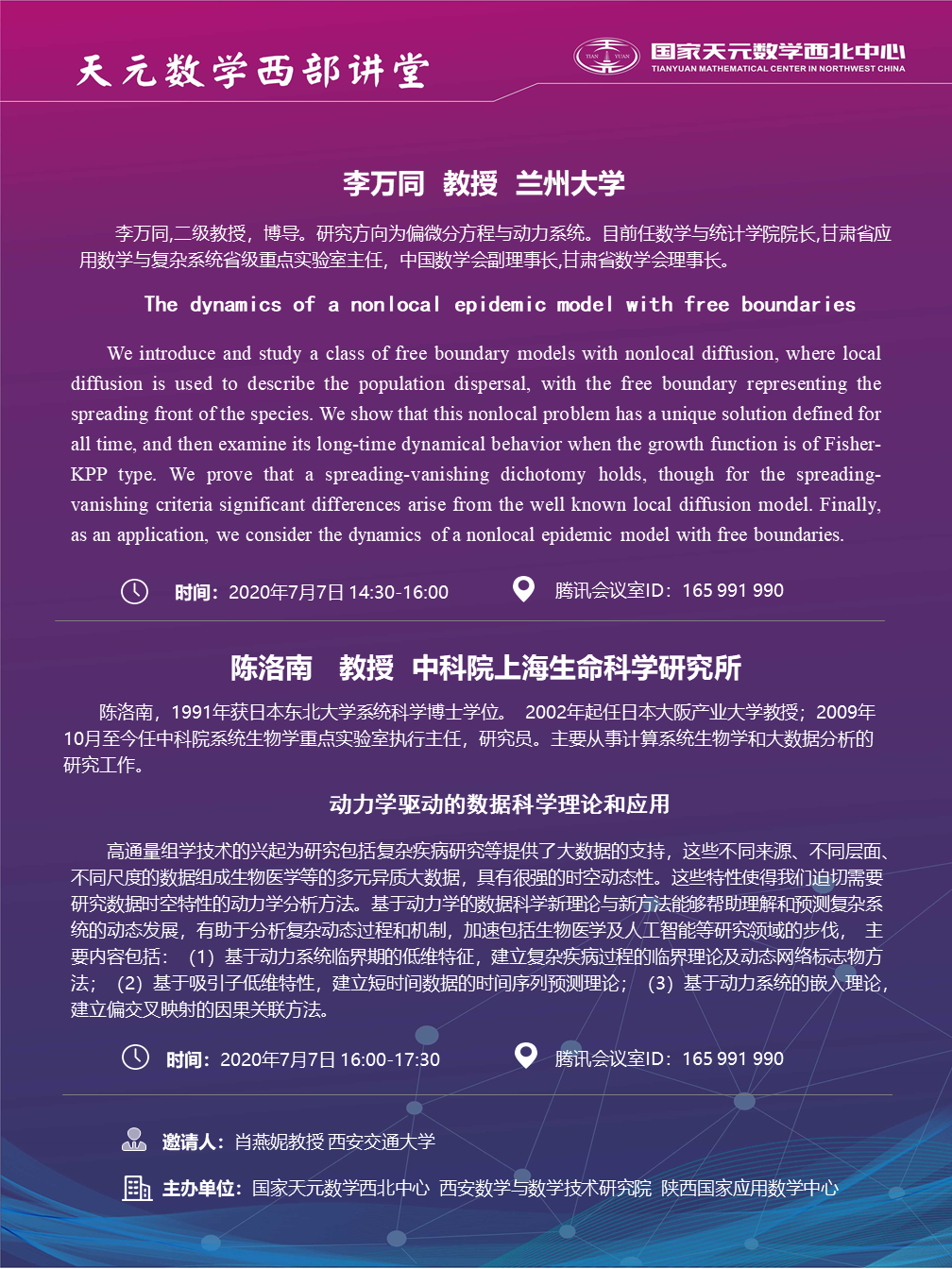 【天元数学西部讲堂】李万同、陈洛南(2020.07.07)