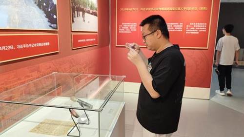 随后,全体同志来到西迁博物馆,参观“听党指挥跟党走——习近平总书记来校考察五周年主题展”。展览通过“领袖关怀 殷殷嘱托”、“强国建设 勇毅前行”、“凝心聚力 奋进一流”等板块,全景呈现学校过去五年来牢记总书记嘱托,以西迁精神为指引,在科研创新、人才培养、社会服务等领域取得的标志性成果。应数2201班丁俊亦同学表示:“一张张照片、一组组数据,让我们真切感受到交大人赓续红色基因、矢志科技报国的担当,也更坚定了我们投身西部建设的决心。”