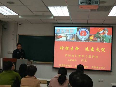 11月10日,学院特邀了消安消防宣教中心的白龙教官为学院师生代表做消防知识讲座。学院党委副书记易媛教授和保卫处薛顺林老师出席了本次活动。