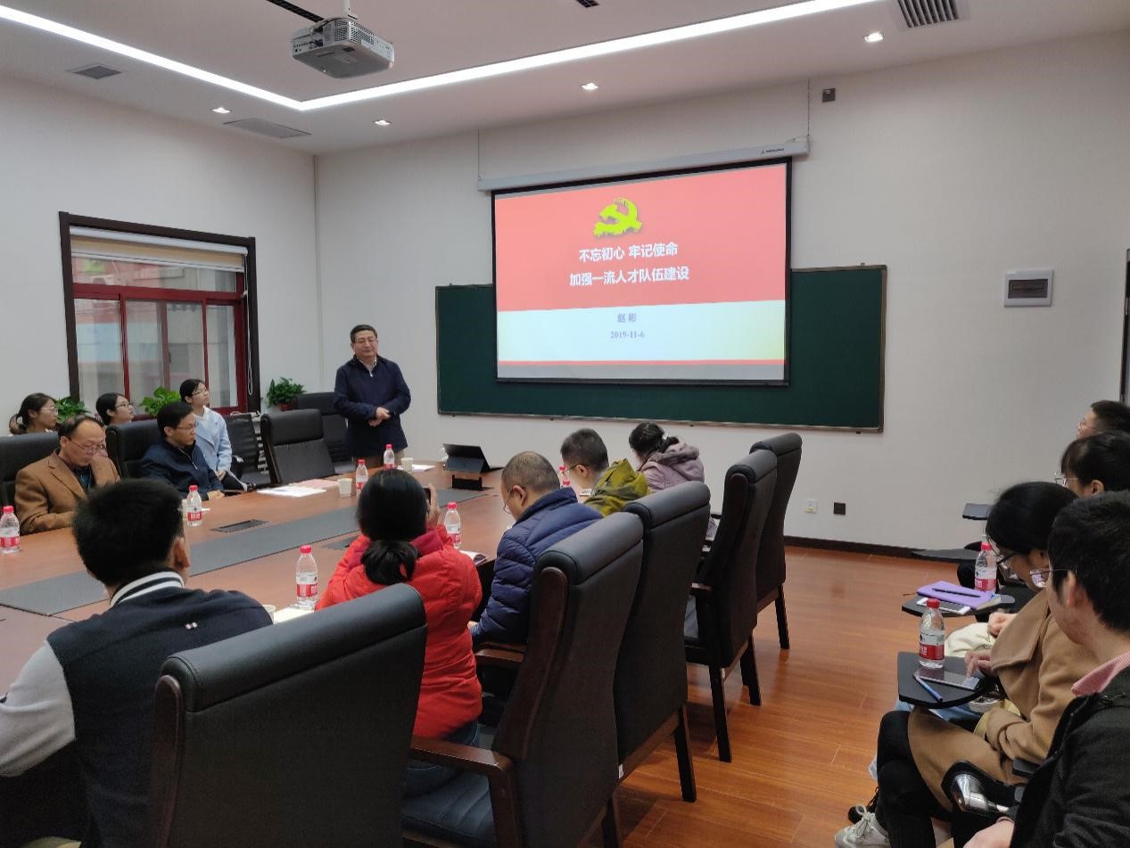 11月6日下午,Beat365正版唯一官网必一院长赵彬和党委书记颜莉分别以“加强一流人才队伍建设”“不忘教书育人初心牢记立德树人使命”为题讲党课,师生党员代表参加学习。
