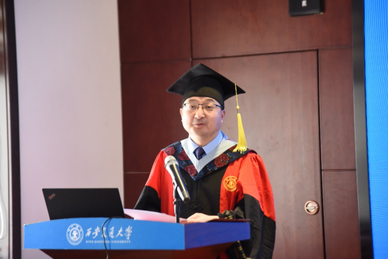 毕业典礼上,院长孙建永以“志存高远,不负韶华,砥砺奋进新时代,谱写人生新华章”为题为毕业生们致辞。他对毕业生表示衷心的祝贺,并提出殷切希冀。希望大家志存高远、胸怀天下,传承西迁精神,将个人的成长和祖国的富强、民族的兴旺紧密联系在一起,做爱国者;脚踏实地、行稳致远,牢记使命担当,用饱满的激情和干事创业的热情迎接即将到来的各种困难,做奋斗者;奋楫笃行、臻于至善,谱写人生华章,为国家富强、民族复兴、人民幸福和人类文明进步作出应有的贡献,做奉献者。