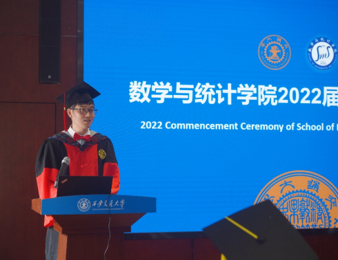 2022届优秀毕业生代表黄摇回忆了在校园中成长奋斗的历程,表示将继续传承弘扬“西迁精神”,建功立业新时代。他代表全体毕业生表达了对母校、老师、同窗的感谢之情,并祝愿学院人才辈出、桃李芬芳、再创辉煌。