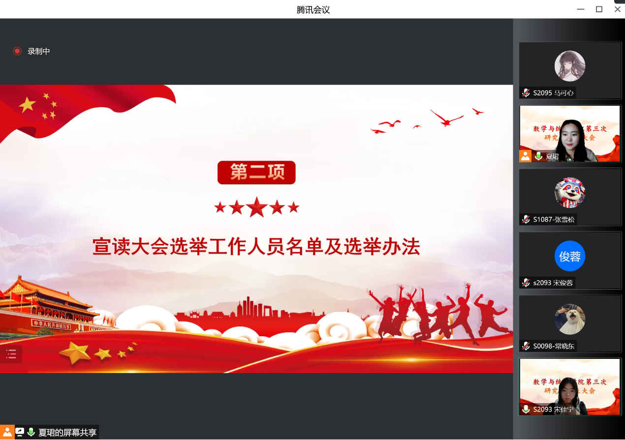 随后,学院研代会筹备工作组成员宋佳宁宣读《Beat365正版唯一官网必一第三次研究生代表大会选举办法(草案)》,与会代表审议并通过《Beat365正版唯一官网必一第三次研究生代表大会选举办法(草案)》及监票人、计票人名单。