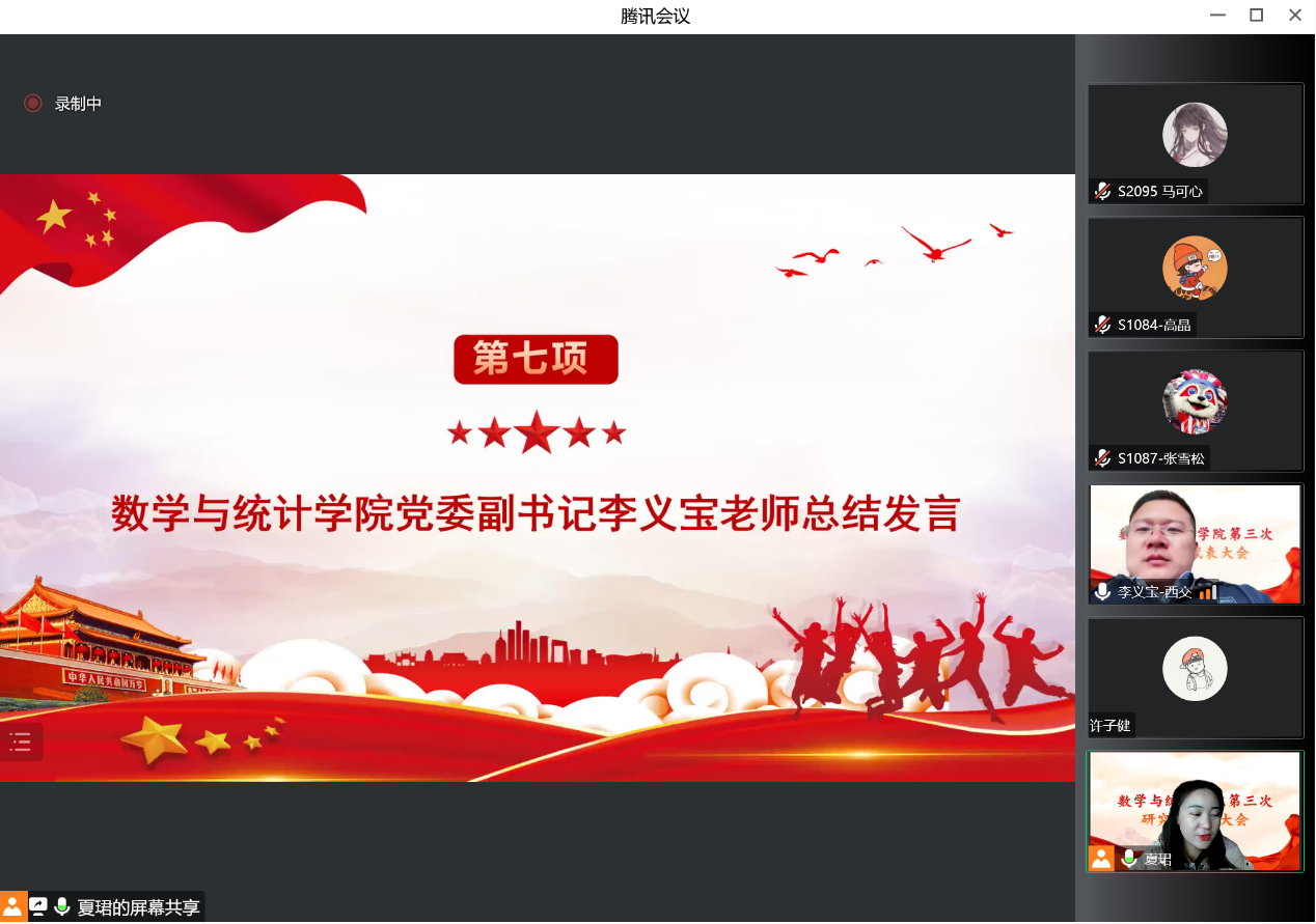 10月10日,Beat365正版唯一官网必一第三次研究生代表大会在线上顺利召开。Beat365正版唯一官网必一党委副书记李义宝、团工委书记张若心出席本次会议,学院61名研究生代表参加会议。大会由学院研究生会成员夏珺主持。